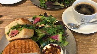カフェ 野菜たっぷりパニーニ 昨年の12月オープンのパンとコーヒーが美味しいお店♪パニーニなのに厚みがありボリューム満点🐷野菜がたくさんとれて、グラノーラ入りヨーグルトもついてとってもヘルシーランチです♪ 2025.03.06 カフェ